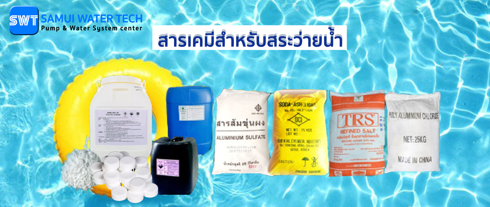 สารเคมีสำหรับ สระว่ายน้ำ เช่น คลอรีนผง 90%,คลอรีนเกล็ด,คลอรีนก้อน, คลอรีนน้ำ 10%, สารส่ม , โซดาแอช, กรดเกลือ