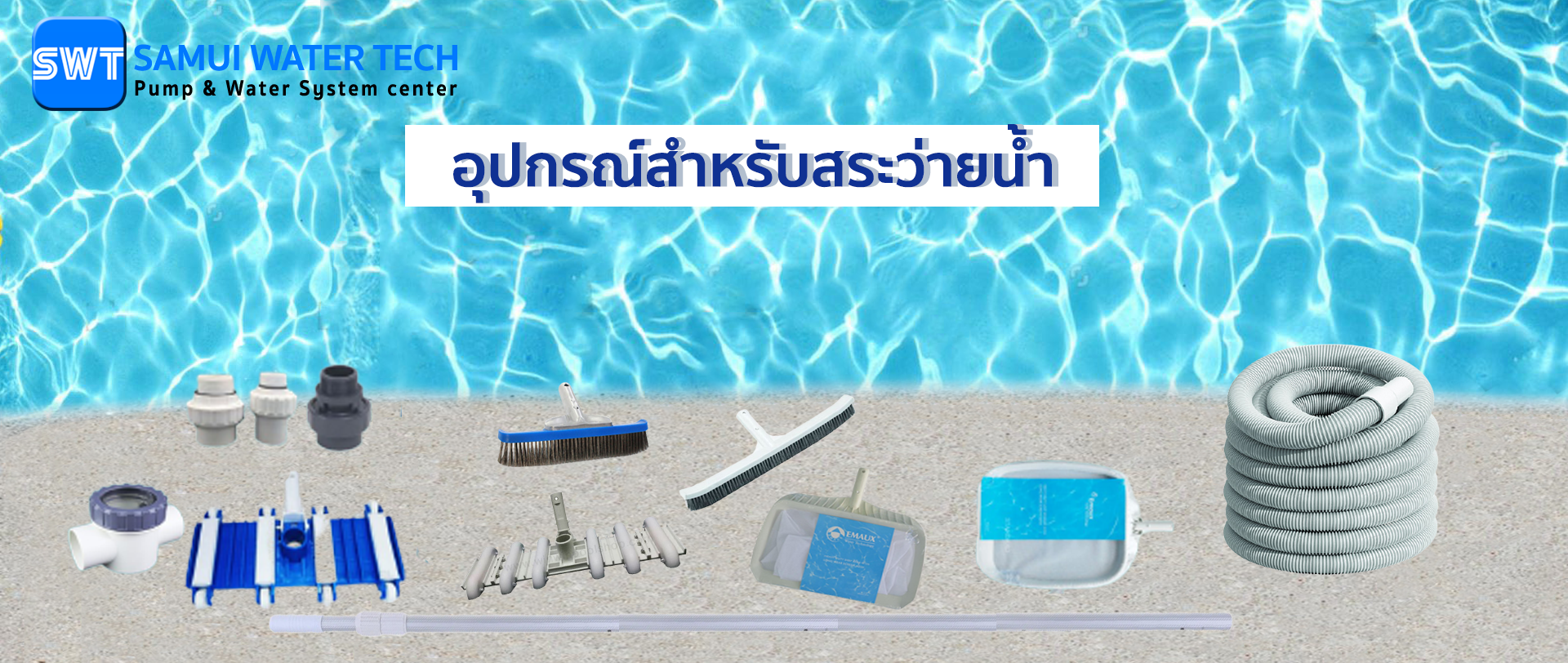 อุปกรณ์ทำความสะอาดสระน้ำ เช่น แปรงขัดสระ, ด้ามดูดตะกอน, ล้อดูดตะกอน,สายดูดตะกอน,