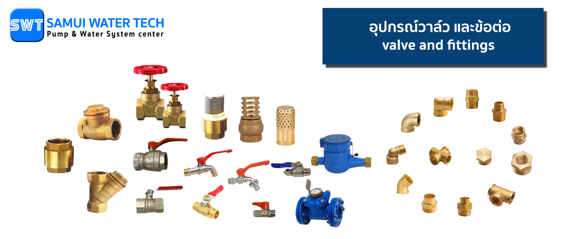 อุปกรณ์วาล์วต่างๆ เช่น ประตูน้ำ เช็ควาล์วสวิง(ลิ้น) เช็ควาล์วสปริง ฟุตวาล์ว วายสแตนเนอรฺ์ บอลวาล์สก้านโยก มินิวาล์ว และก็อกน้ำขนาดต่างๆ